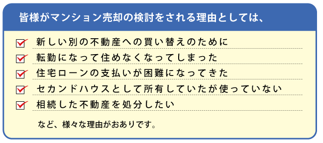 当社には、マンションの売却をご検討されているお客様達から、