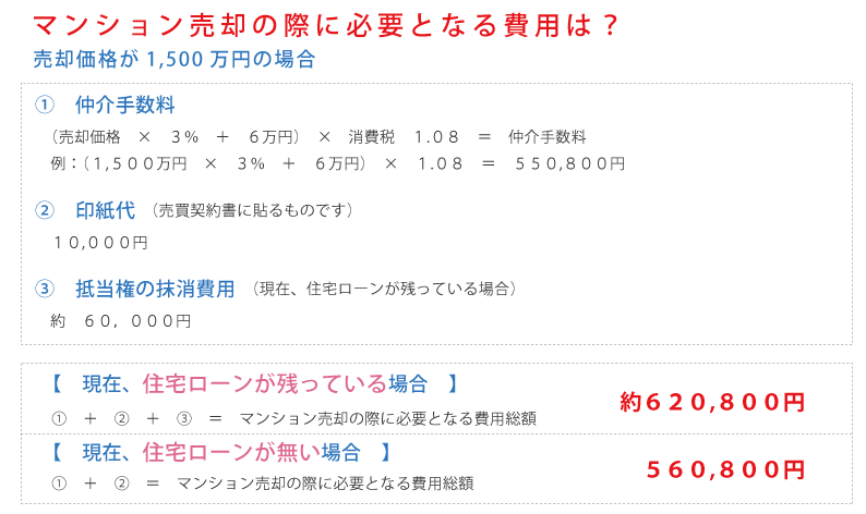 ※上記の費用は 1500万円で物件を売却した場合の試算ですので、売却価格によって違いが生じます。