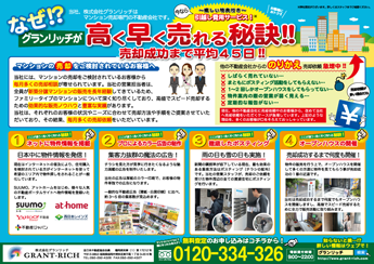 ↑グランリッチ売却物件募集のチラシ (クリックすると拡大します)